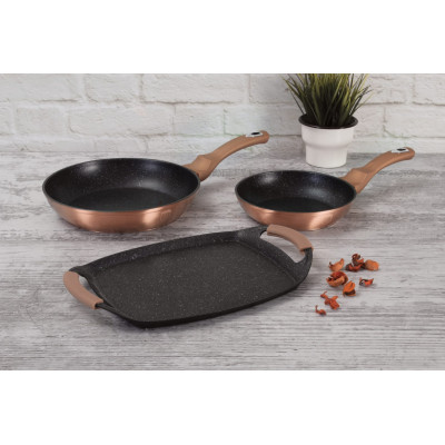 ZESTAW PATELNI GRANITOWYCH Ø22/26cm + PŁYTA DO SMAŻENIA BERLINGER HAUS z serii METALLIC LINE - ROSE GOLD