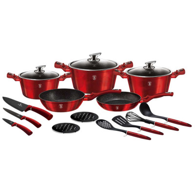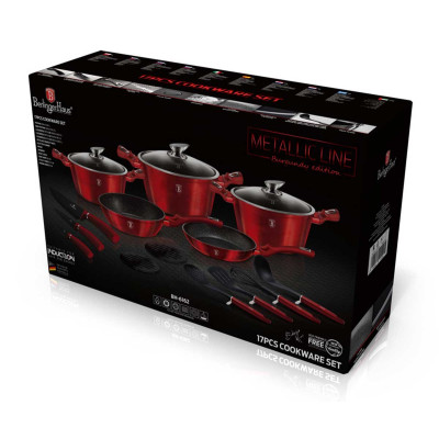 17-elementowy zestaw garnków BERLINGER HAUS z serii METALLIC LINE -BURGUNDY [BH-6162]