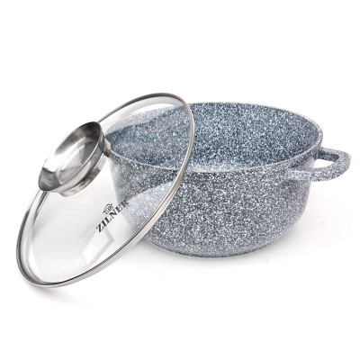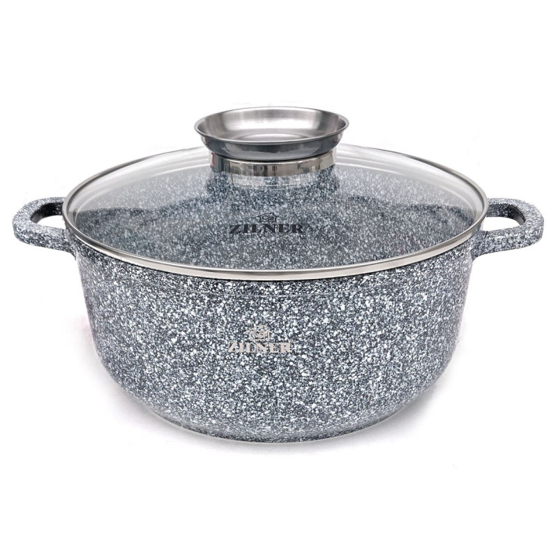 Granitowa / marmurowa powłoka sprawia, że naczynia są wyjątkowo odporne na wszelkie zarysowania i trwałe. Ten typ garnków i patelni pozwala również na smażenie przy użyciu minimalnej ilości tłuszczu, ponieważ naczynie rozgrzewa się podobnie do kamienia i oddaje ciepło całą swą powierzchnią.