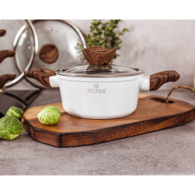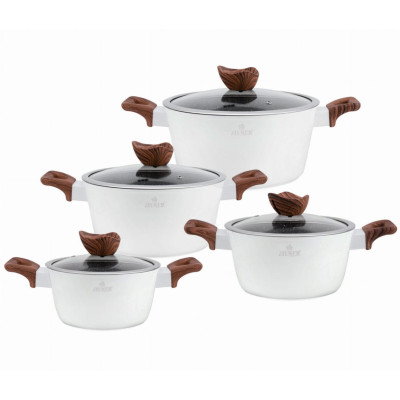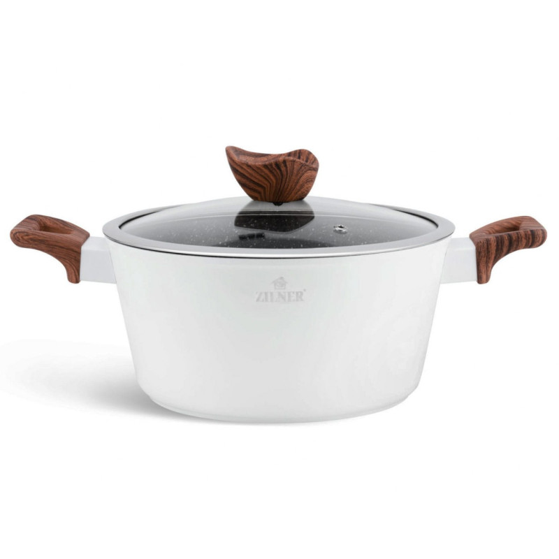 Wysokiej klasy 8-częściowy zestaw garnków z nieprzywieralna powłoką granitową firmy ZILNER White Lilly