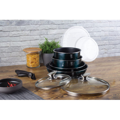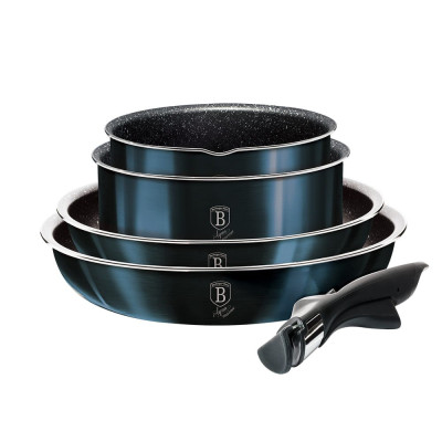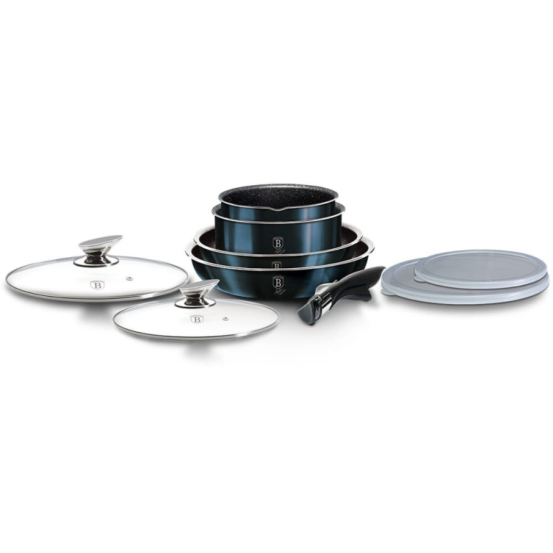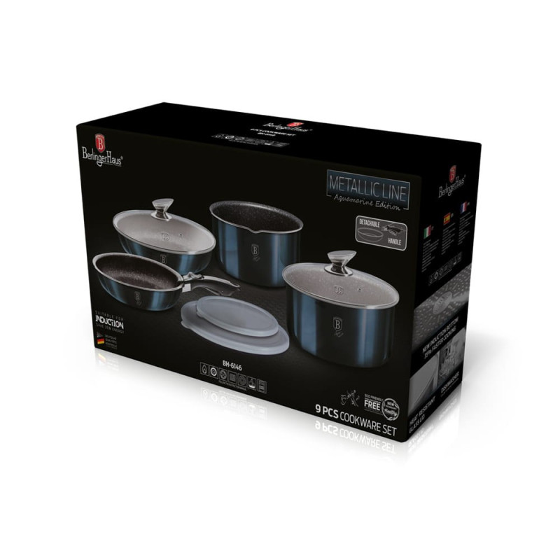 9 elementowy zestaw garnków aluminiowych CLICK & COOK z powłoką granitową oraz odpinaną rączką w systemie Click it renomowanej marki BERLINGER HAUS z serii Metallic Line.