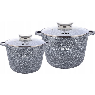 Wysokiej jakości zestaw 2 wysokich garnków marmurowych 10.2L + 6.2L ze szklaną pokrywą. Wykonane z odlewu aluminiowego pokrytego marmurową powłoką nieprzywierającą. Produkt z wytrzymałą, nieprzywieralną powłoką marmurową pozwala na zdrowe, beztłuszczowe gotowanie i łatwe mycie, a przede wszystkim chroni jedzenie przed przypaleniem. Zastosowany materiał perfekcyjnie utrzymuje i przewodzi ciepło.