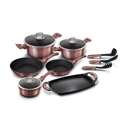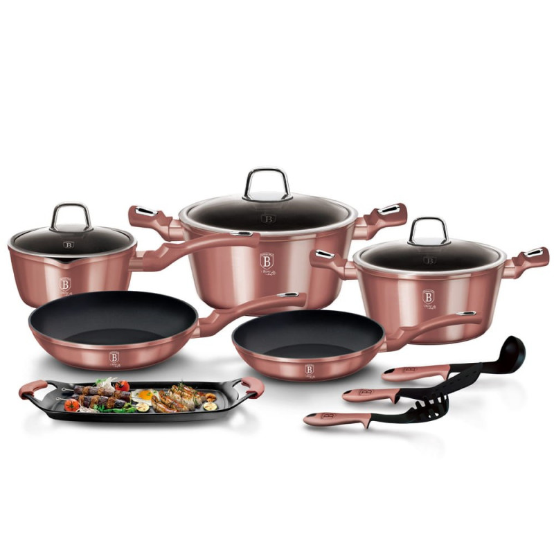 12-elementowy zestaw garnków BERLINGER HAUS z serii METALLIC iROSE