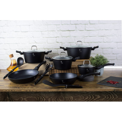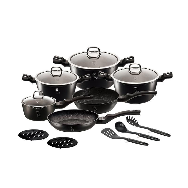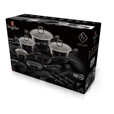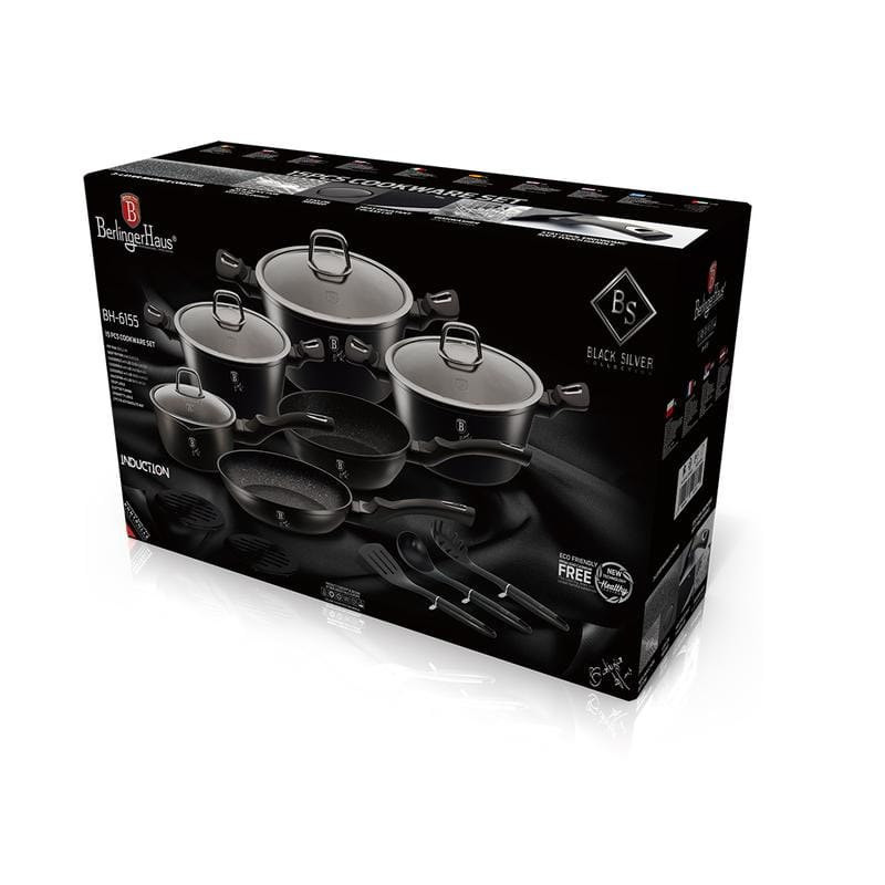 15-elementowy zestaw garnków BERLINGER HAUS z serii METALLIC LINE - BLACK SILVER