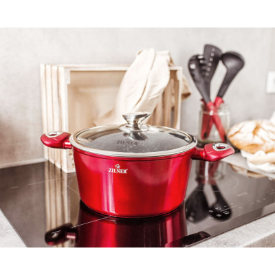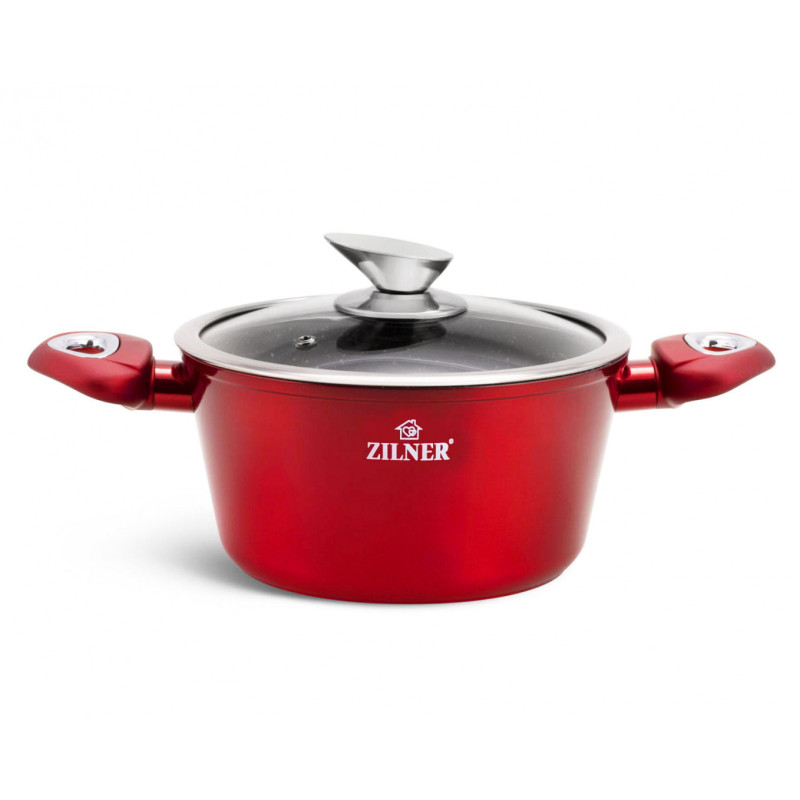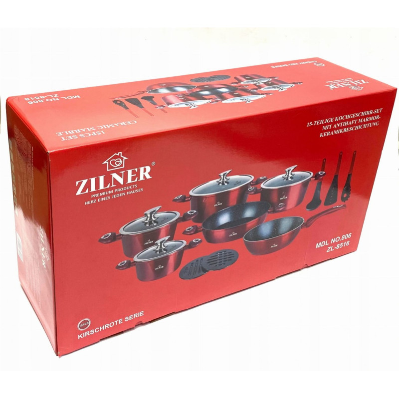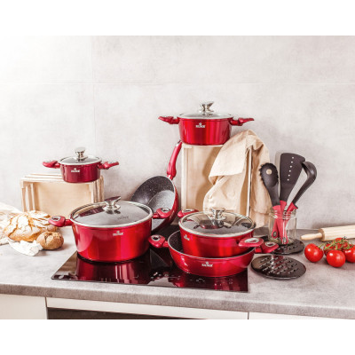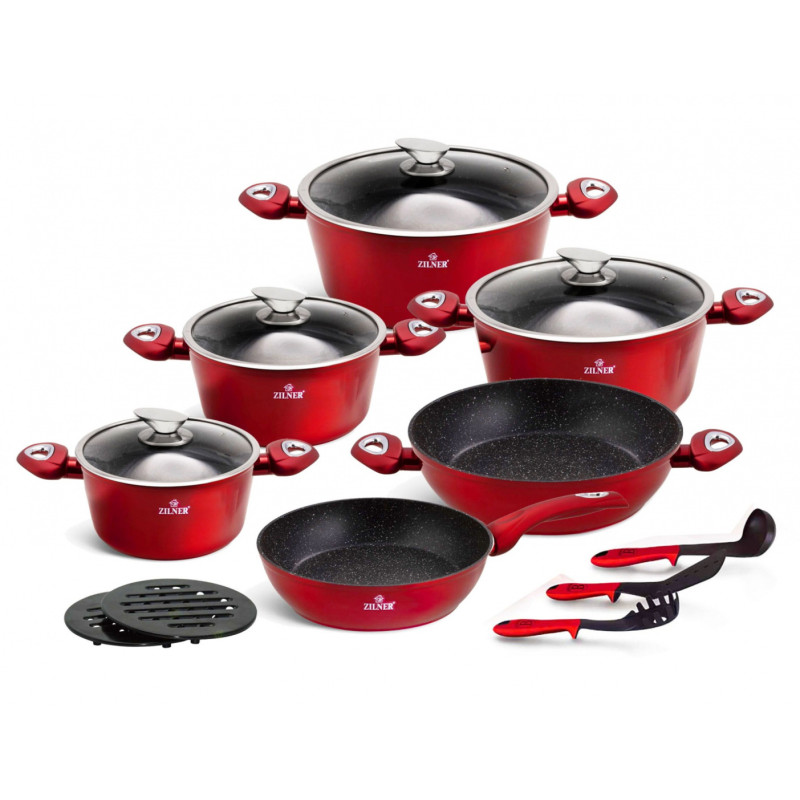 Wysokiej klasy 15-częściowy zestaw garnków z przyborami kuchennymi z nieprzywieralna powłoką granitową firmy ZILNER Cherry Red