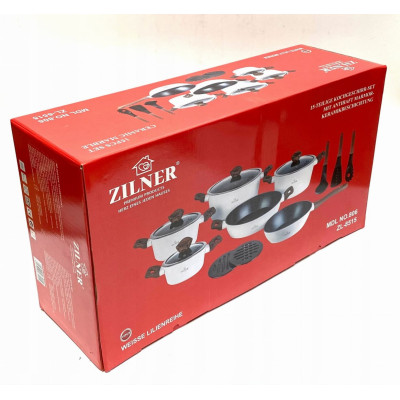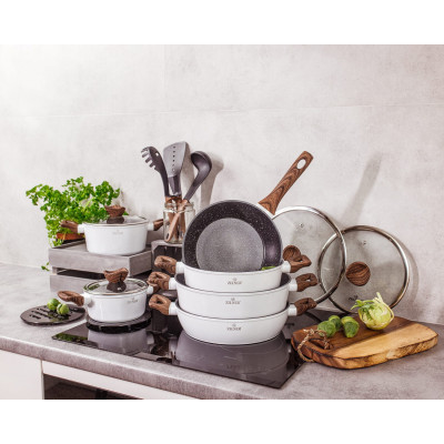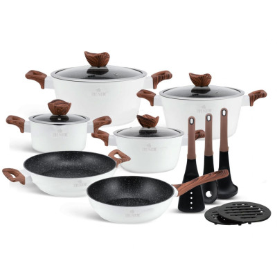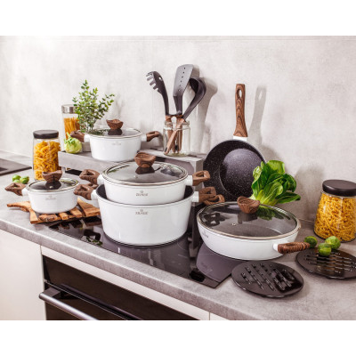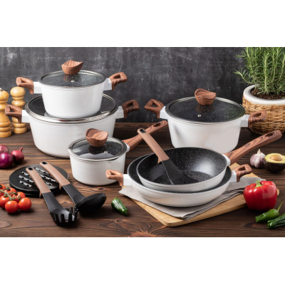 Wysokiej klasy 15-częściowy zestaw garnków z przyborami kuchennymi z nieprzywieralna powłoką granitową firmy ZILNER White Lilly