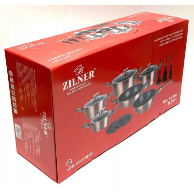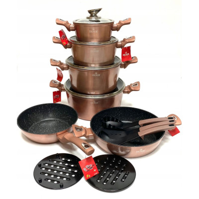 Wysokiej klasy 15-częściowy zestaw garnków z przyborami kuchennymi z nieprzywieralna powłoką granitową firmy ZILNER Rose Gold
