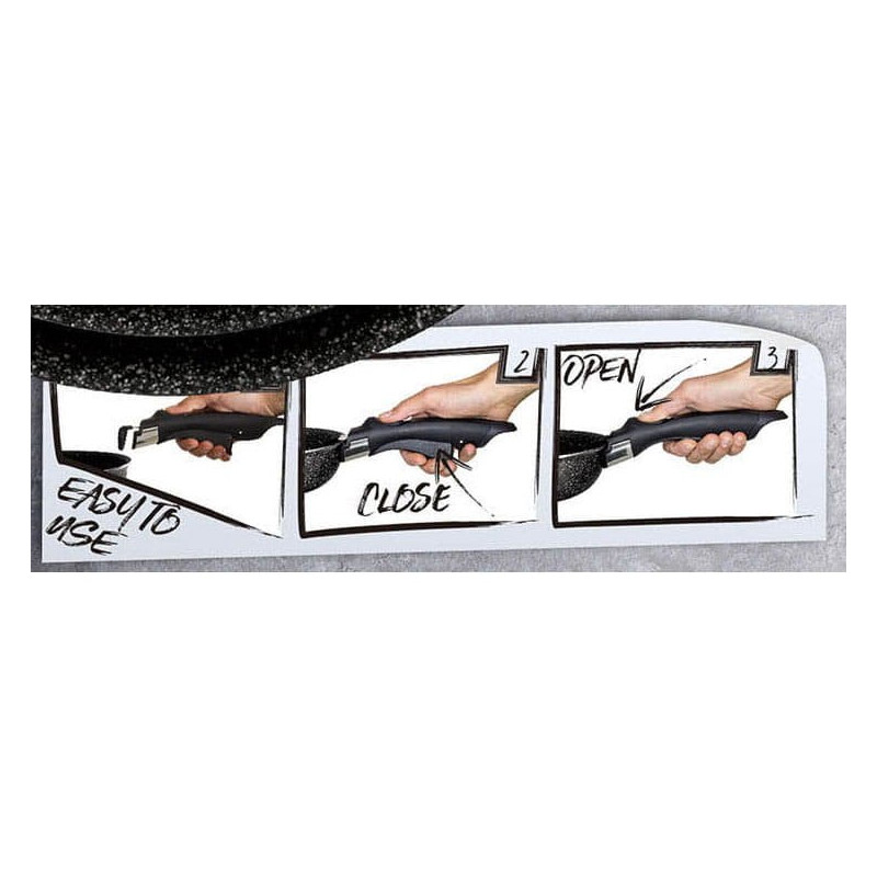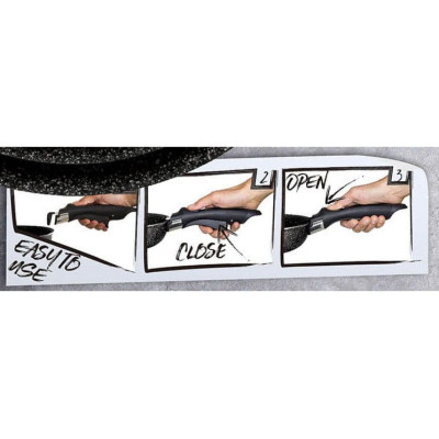 Patelnie oraz rondle posiadają wygodny, odpinany, nienagrzewający się uchwyt. Dzięki odpinanemu uchwytowi naczynia łatwiej przechowywać, można wstawić do piekarnika, a w zmywarce zajmą mniej miejsca niż tradycyjne.