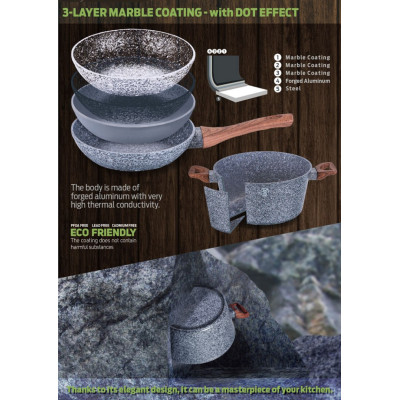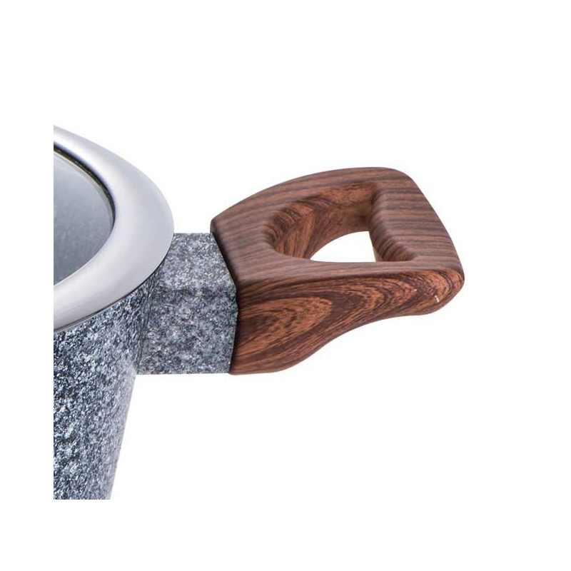 Granitowa powłoka sprawia, że naczynia są wyjątkowo odporne na wszelkie zarysowania i trwałe. Ten typ garnków i patelni pozwala również na smażenie przy użyciu minimalnej ilości tłuszczu, ponieważ naczynie rozgrzewa się podobnie do kamienia i oddaje ciepło całą swą powierzchnią.