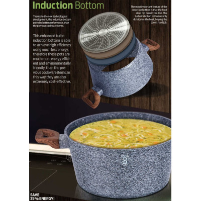 Kompozycja aluminiowego korpusu i ferromagnetycznego dna umożliwia użytkowanie na kuchni indukcyjnej oraz na wszystkich innych rodzajach kuchni i wykorzystywania najlepszych właściwości akutermicznych odlewanego i kutego aluminium na wszystkich kuchenkach i płytach grzewczych. Możliwość gotowania/smażenia w temperaturze do 220°C.