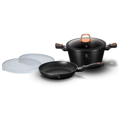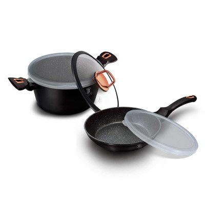 5 częściowy zestaw GARNEK + PATELNIA granitowa BERLINGER HAUS z serii BLACK ROSE
