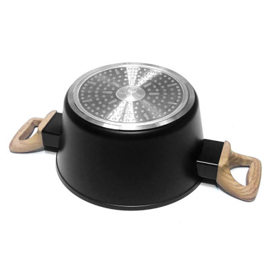 Kompozycja aluminiowego korpusu i ferromagnetycznego dna umożliwia użytkowanie na kuchni indukcyjnej oraz na wszystkich innych rodzajach kuchni i wykorzystywania najlepszych właściwości akutermicznych odlewanego i kutego aluminium na wszystkich kuchenkach i płytach grzewczych. Możliwość gotowania/smażenia w temperaturze do 220°C.