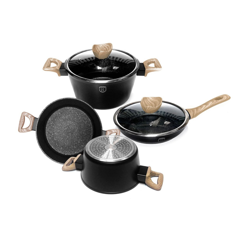 15-elementowy zestaw garnków BERLINGER HAUS EBONY LINE - MAPLE WOOD.