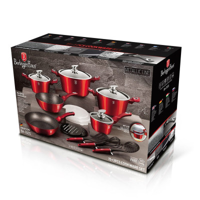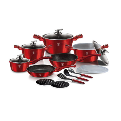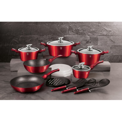 18-elementowy zestaw garnków BERLINGER HAUS z serii METALLIC LINE -BURGUNDY