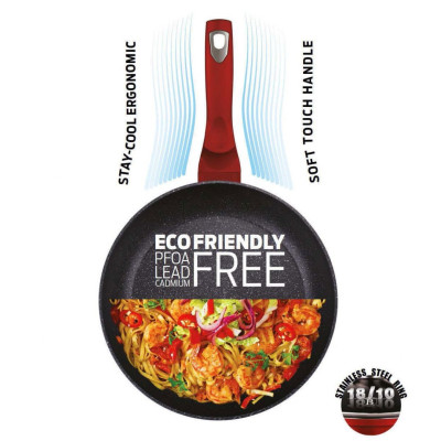 Granitowa powłoka sprawia, że naczynia są wyjątkowo odporne na wszelkie zarysowania i trwałe. Ten typ garnków i patelni pozwala również na smażenie przy użyciu minimalnej ilości tłuszczu, ponieważ naczynie rozgrzewa się podobnie do kamienia i oddaje ciepło całą swą powierzchnią.