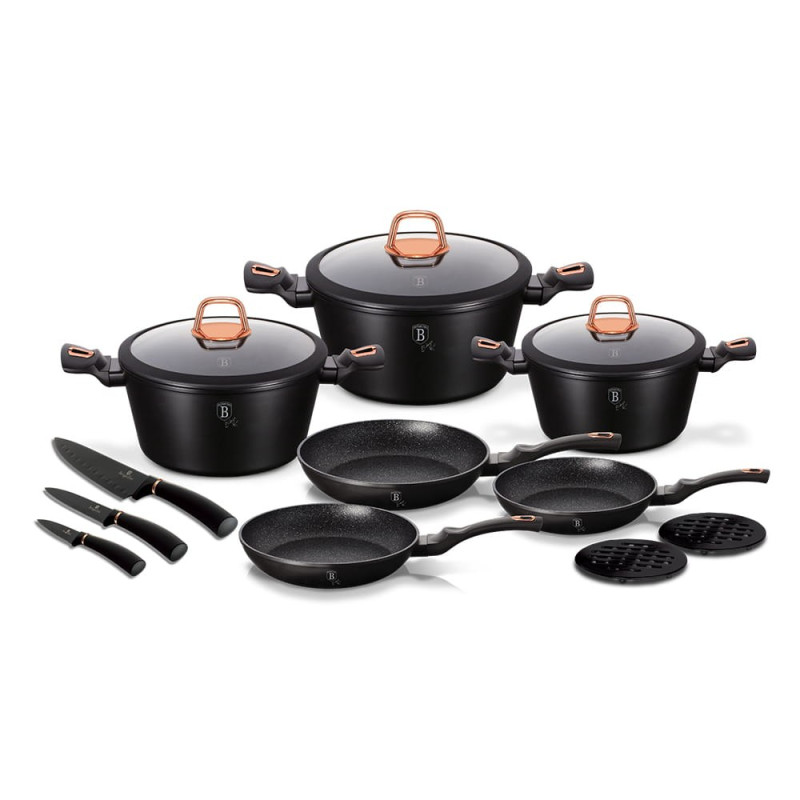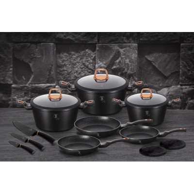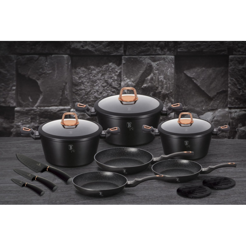 14-elementowy zestaw garnków BERLINGER HAUS z serii BLACK ROSE COLLECTION