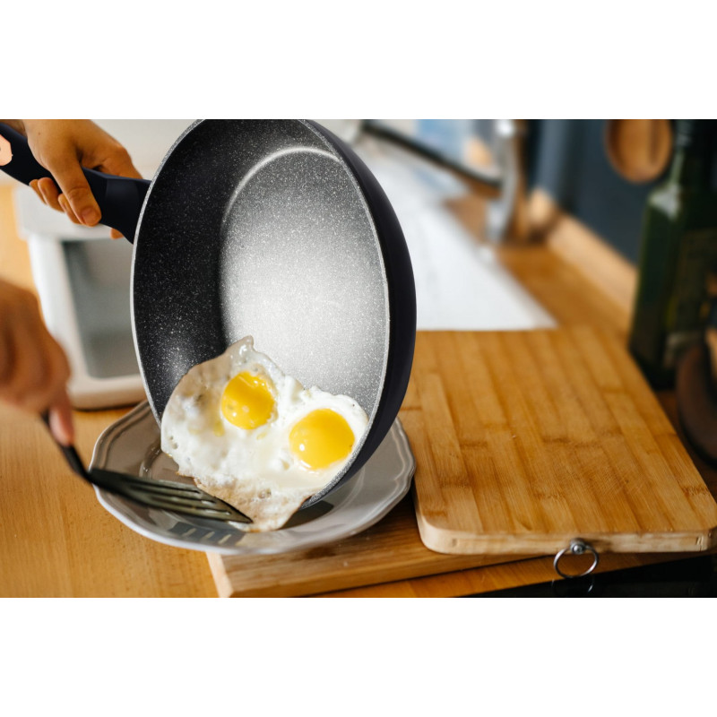 Granitowa powłoka sprawia, że naczynia są wyjątkowo odporne na wszelkie zarysowania i trwałe. Ten typ garnków i patelni pozwala również na smażenie przy użyciu minimalnej ilości tłuszczu, ponieważ naczynie rozgrzewa się podobnie do kamienia i oddaje ciepło całą swą powierzchnią.
