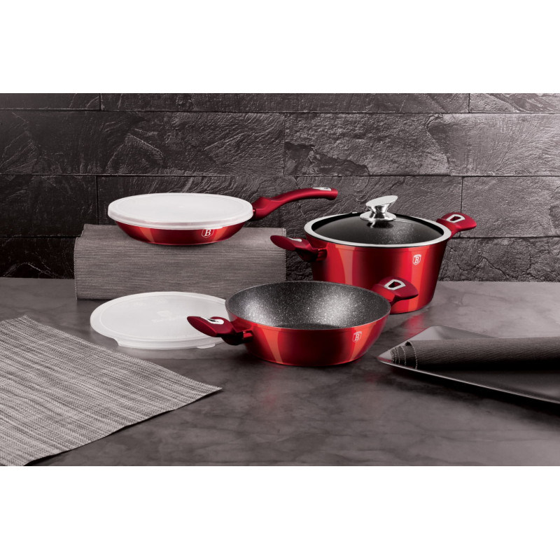 6-elementowy zestaw garnków BERLINGER HAUS z serii METALLIC LINE - BURGUNDY