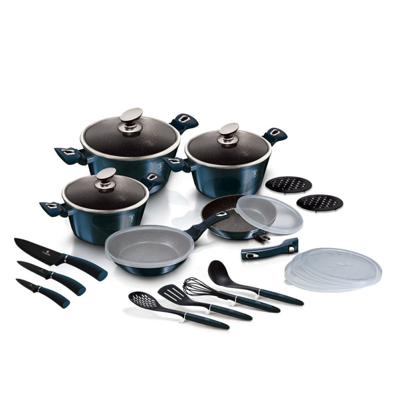 22-elementowy zestaw garnków BERLINGER HAUS z serii METALLIC LINE - AQUAMARINE