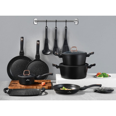 Wysokiej klasy 15-częściowy zestaw garnków z przyborami kuchennymi z nieprzywieralna powłoką marmurową firmy ZILNER z serii Black Rosegold