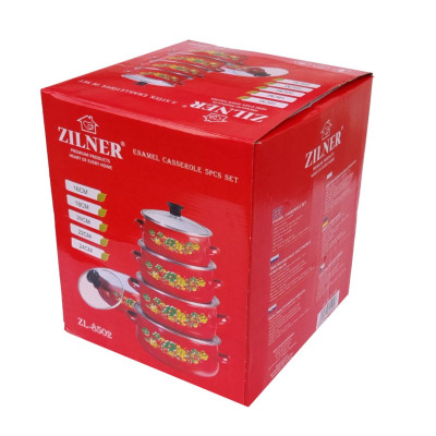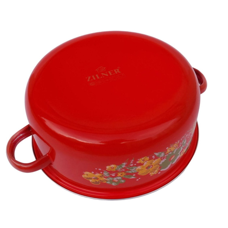 Zestaw garnków emaliowanych, 10 elementów, firmy ZILNER. Akutermiczne, wysokiej jakości dno, które świetnie zatrzymuje i rozprowadza ciepło. Dzięki temu żywność nagrzewa się szybko a ciepło jest dobrze magazynowane. Garnki nadają się do wszelkich źródeł ogrzewania: kuchenki elektryczne, gazowe, ceramiczne i halogenowe (z wyjątkiem indukcyjnych). Oferowany komplet garnków to gwarancja zdrowego przygotowania jedzenia. Gotowanie w niewielkiej ilości wody, smażenie z oszczędnym użyciem tłuszczu minimalizuje utratę witamin, minerałów i smaku!