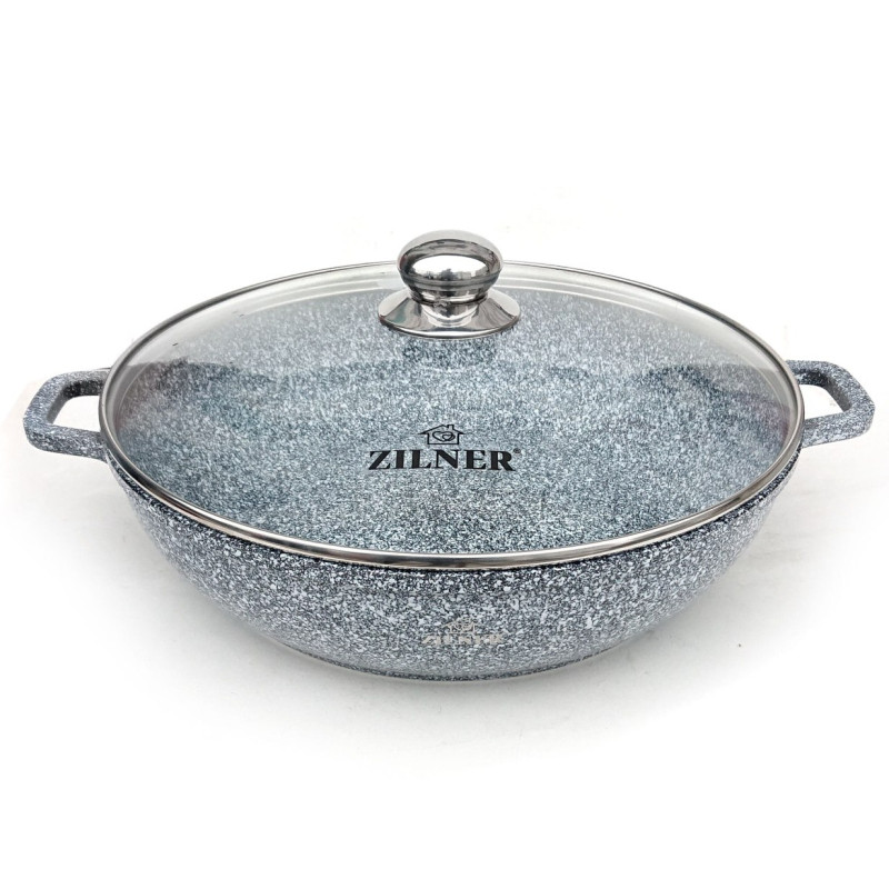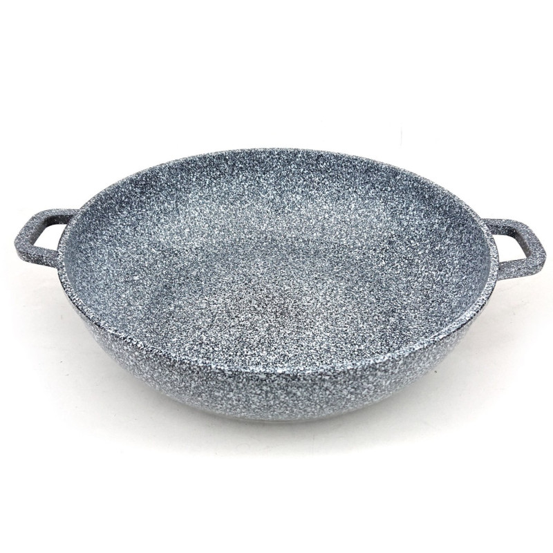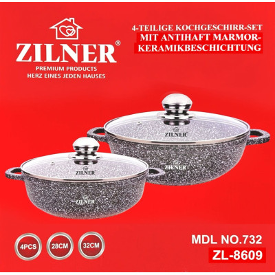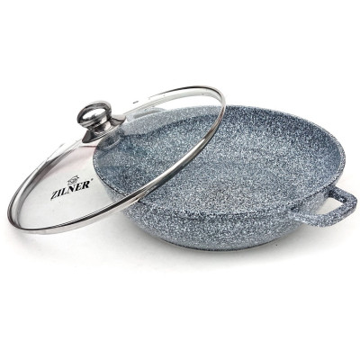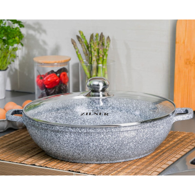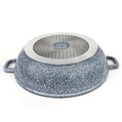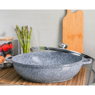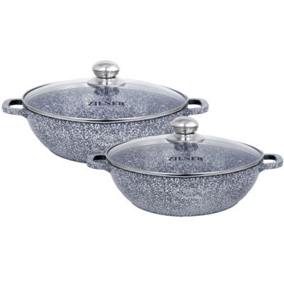 Zestaw wysokiej jakości niskich garnków 3.3L / 28cm oraz 5.5L / 32 cm. Wykonane z odlewu aluminiowego pokrytego marmurowo-ceramiczną powłoką nieprzywierającą. Produkt z wytrzymałą, nieprzywieralną powłoką marmurową pozwala na zdrowe, beztłuszczowe gotowanie i łatwe mycie, a przede wszystkim chroni jedzenie przed przypaleniem. Zastosowany materiał perfekcyjnie utrzymuje i przewodzi ciepło.
