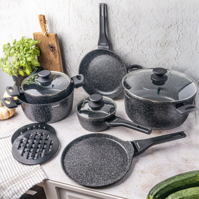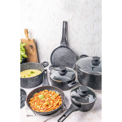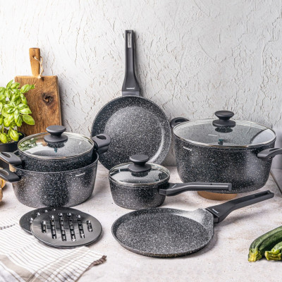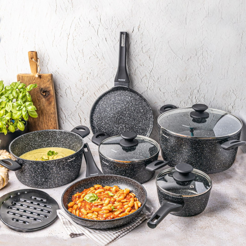12-elementowy zestaw garnków i patelni z marmurkową powłoką nieprzywierającą marki KLAUSBERG.