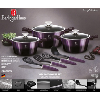 Komplet garnków z przyborami kuchennymi marki BERLINGER HAUS z serii PURPLE ECLIPSE