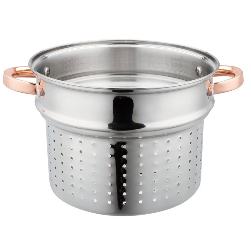 Wielofunkcyjność: Umożliwia gotowanie makaronu, warzyw z wkładem lub przygotowywanie potraw na wolnym ogniu. Może być używany także jako zwykły garnek.