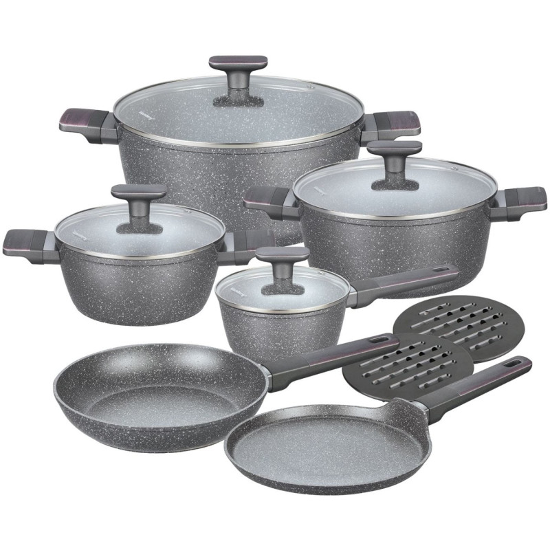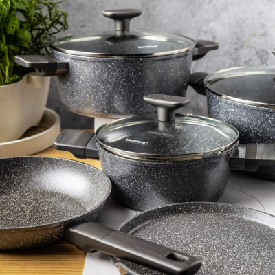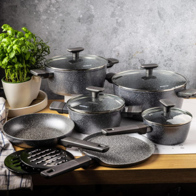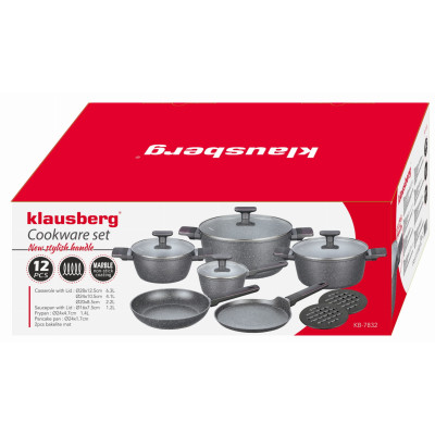 12-elementowy zestaw garnków i patelni z marmurkową powłoką nieprzywierającą marki KLAUSBERG.